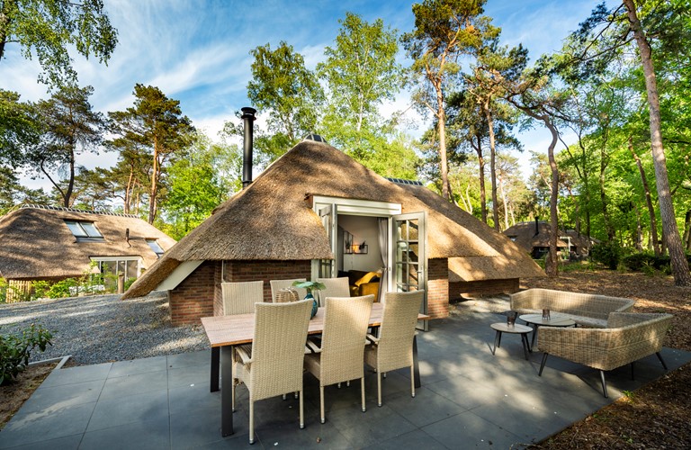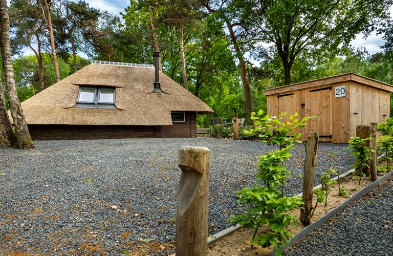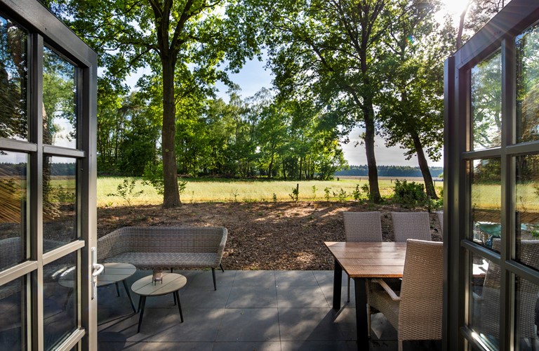 Buiten kunt u heerlijk zitten of dineren met het hele gezin in de lounge of aan de terrastafel en genieten van het buitenleven. Om extra lang van de zon te kunnen genieten is er nog recent een tweede terras aangelegd. Wellicht spot u wat wild zoals een specht, een ree of een eekhoorntje, de acrobaat van het bos.