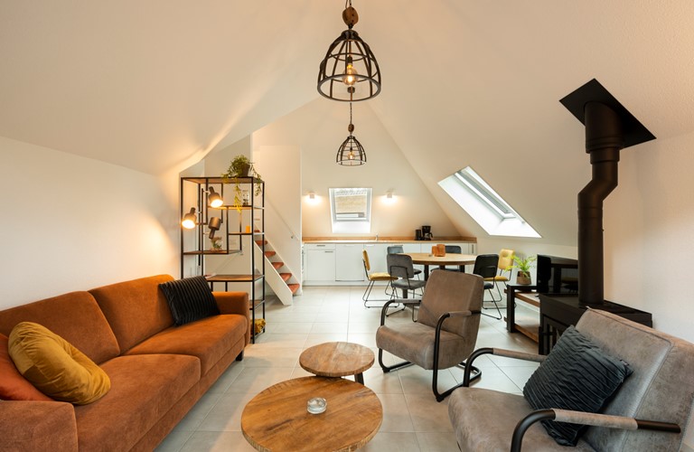 Deze woning is een stijlvol gebouwde split level woning. In de warm ingerichte woning is er een royale leefruimte met een zithoek, eethoek en open keuken. Voor de koudere dagen creëert de houtkachel extra sfeer en warmte. Aan de hal grenzen 2 slaapkamers, de badkamer en een toilet. De derde slaapkamer bereikt u vanuit de leefruimte via het trapje naar boven.