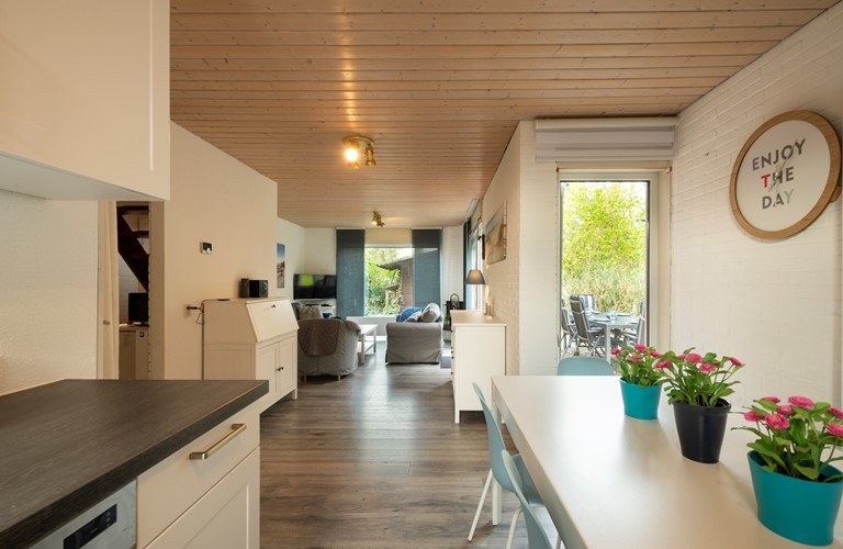 Na binnenkomst in de entree, bedreedt u de ruime woonkamer met open eetkeuken. Tevens bevindt zich hier een slaapkamer en de badkamer. De begane grond is in 2018/2019 gerenoveerd. Op de eerste verdieping bevinden zich twee extra slaapkamers en een kinderkamer uitgerust met commode, luieremmer, waskom en andere benodigdheden. Ook is er een open ruimte met ligstoelen om te ontspannen of te lezen. Ook de kinderen kunnen hier zorgeloos spelen door het veilige traphekje, de leuke speel- of knutseltafel en de vloer die gebruikt kan worden voor allerlei spelavonturen.