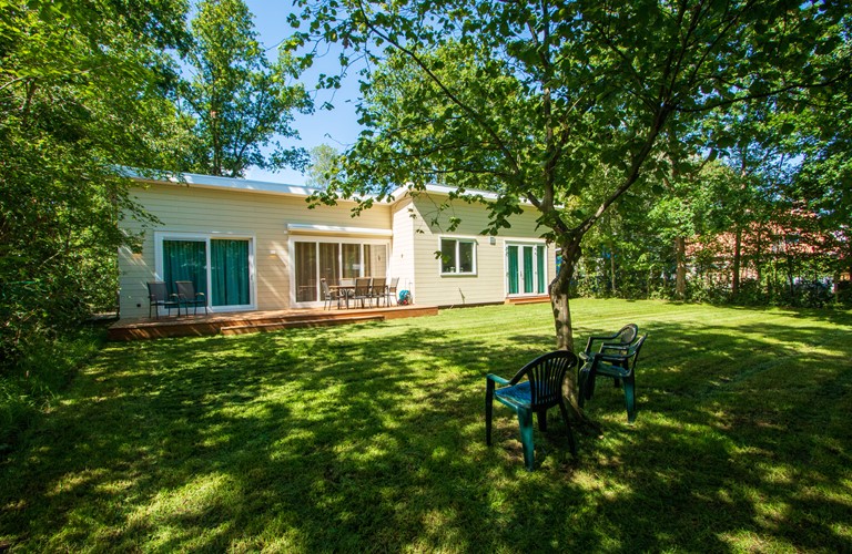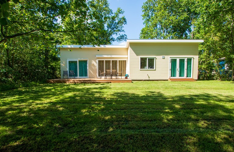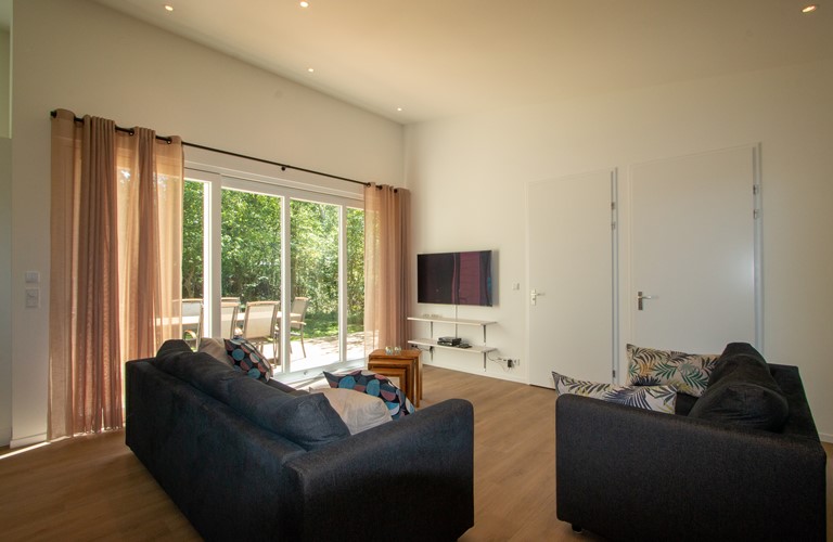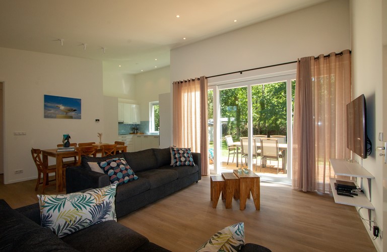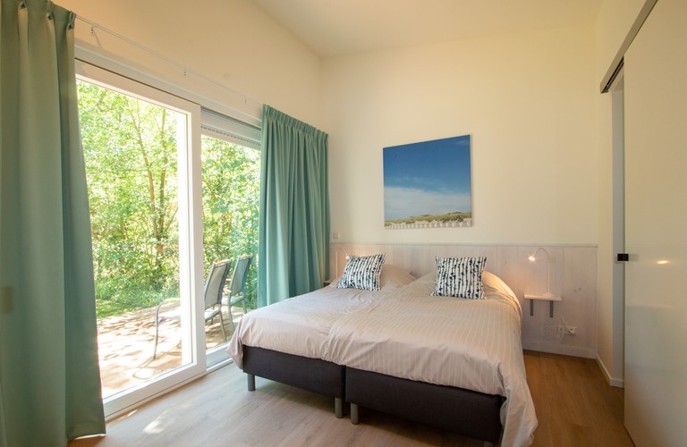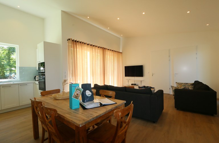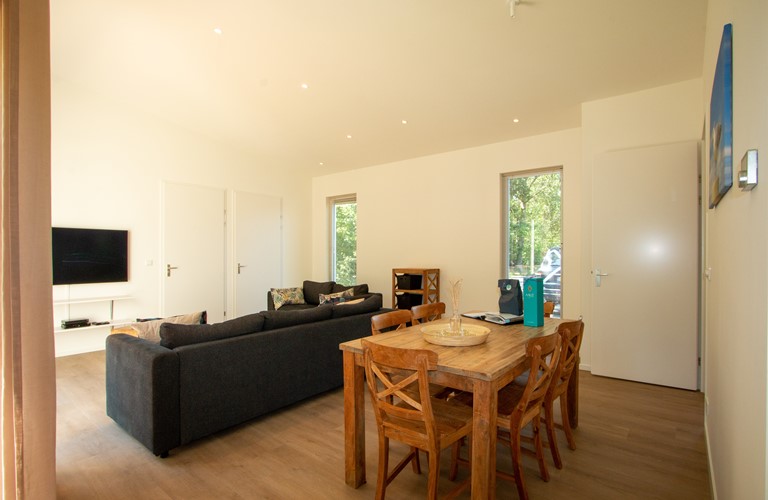 De in 2020 nieuw gebouwde vakantiewoning is voorzien van alle moderne comfort en gemak inclusief vloerverwarming, en is daarom geschikt voor elk seizoen. Hij is volledig gelijkvloers en heeft een gezellige lichte woonkamer met schuifdeur naar een ruim terras en tuin. Verder zijn er een aangrenzende eethoek en open keuken met alle moderne apparatuur. In de woning zijn 3 riante tweepersoons slaapkamers aanwezig waarvan 2 met openslaande deuren naar de tuin. De woning heeft 2 badkamers plus een apart gastentoilet. Eén slaapkamer heeft een badkamer en-suite, met ruime inloopdouche.