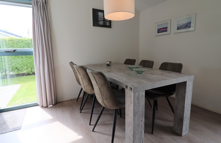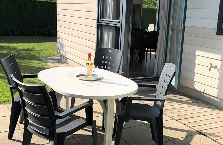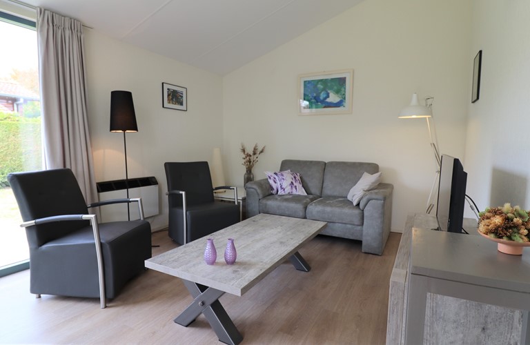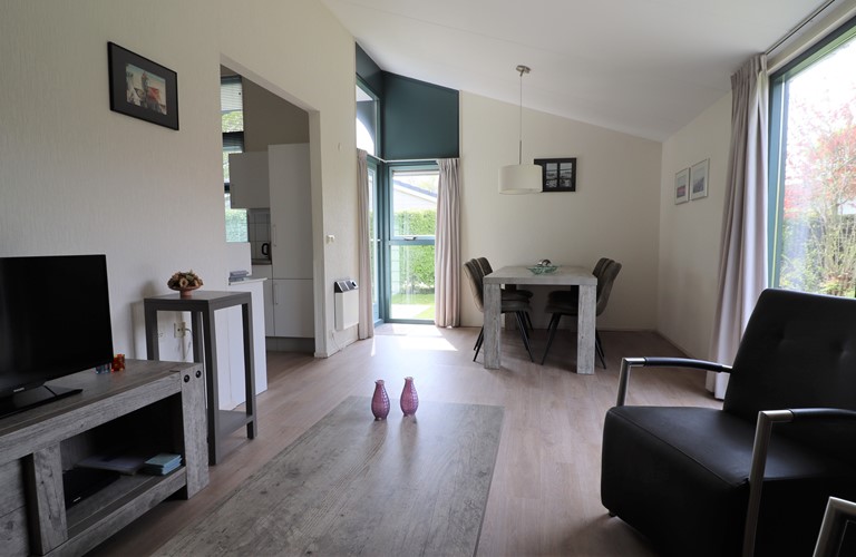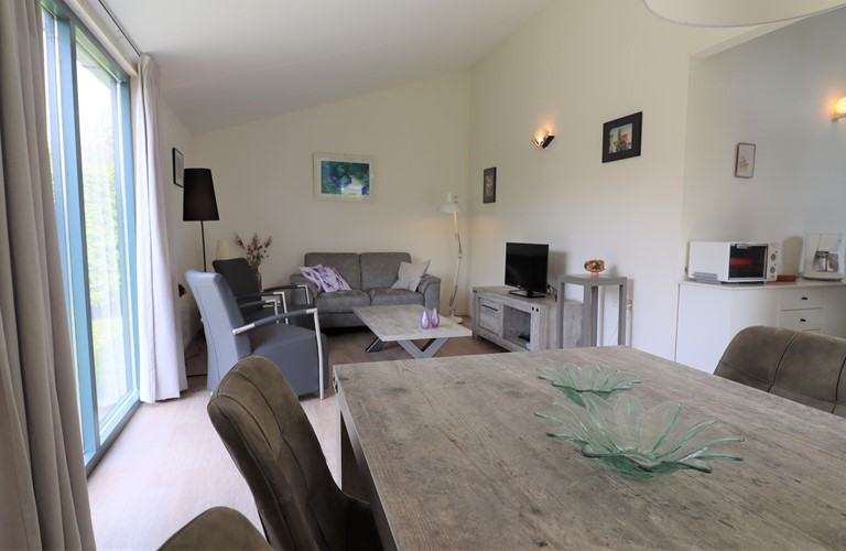 De bungalow heeft een moderne woonkamer voorzien van televisie en gezellige eethoek. In de open keuken vindt u een oven, magnetron en vaatwasser. Er zijn twee slaapkamers, één met een tweepersoonsbed (lits jumeaux) en één slaapkamer met twee eenpersoons bedden. De badkamer is uitgerust met douche en wastafel. Het toilet is apart te vinden. Een kinderbedje en kinderstoel zijn aanwezig in de woning.