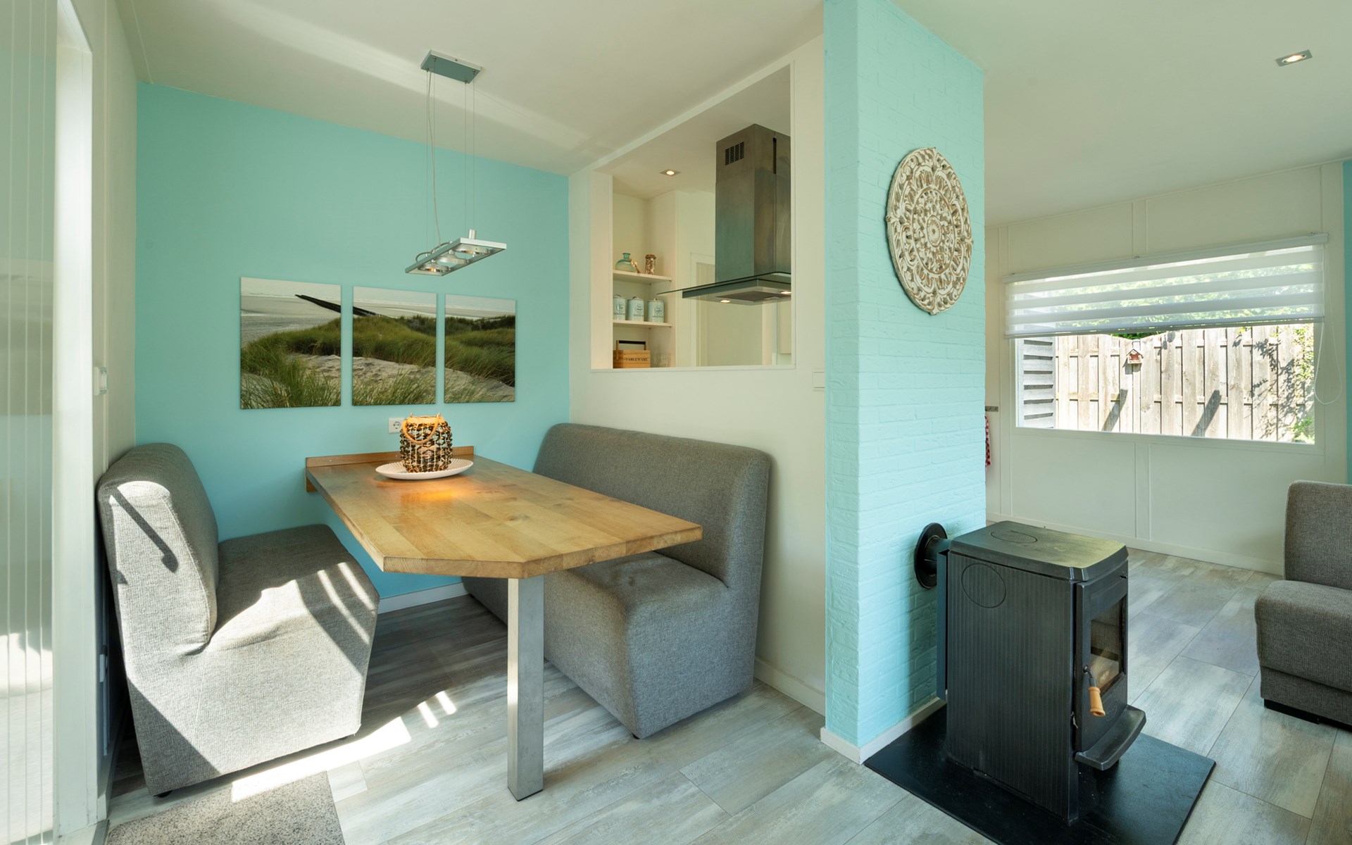 Het huis heeft een gezellige woonkamer met een sfeervolle houtkachel en moderne apparatuur zoals Netflix, geluidssysteem en LED-dimlampen die tevens veel sfeer brengen. De woonkamer grenst aan een moderne keuken met vaatwasser. Er zijn twee ruime slaapkamers en een kinderkamer voorzien van een stapelbed. Beide grote slaapkamers zijn voorzien van airconditioning. Er is een badkamer met douche en toilet aanwezig.
