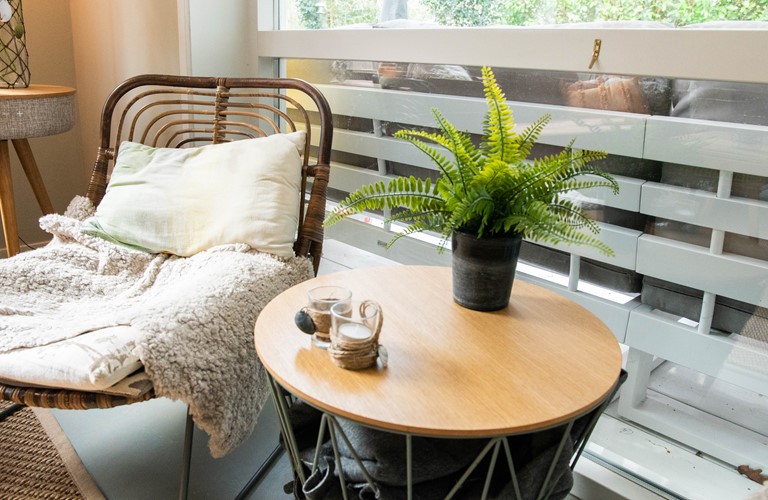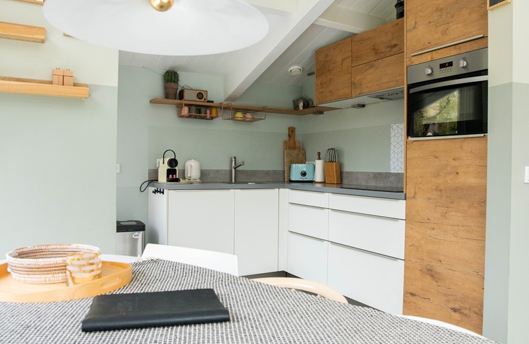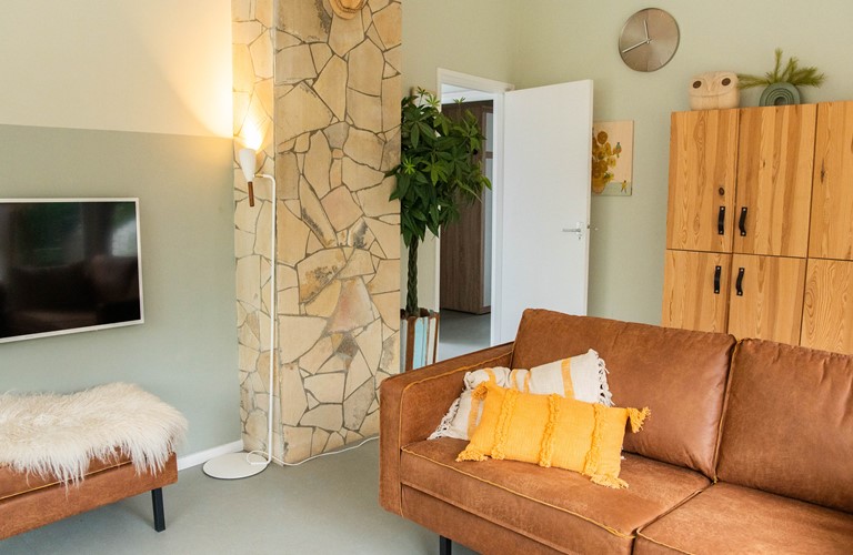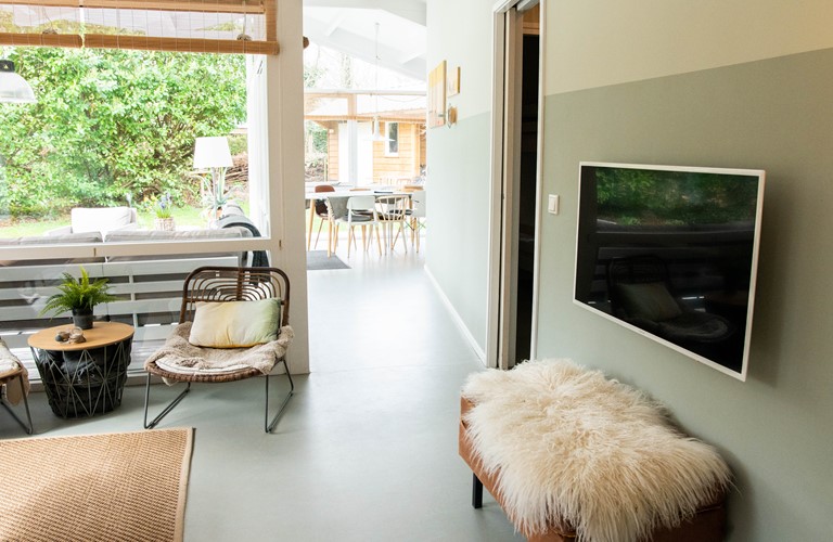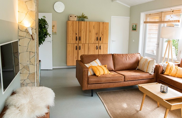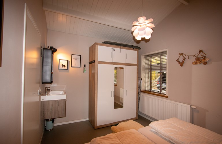Deze gelijkvloerse woning is in 2016 verbouwd en van alle gemakken voorzien, waaronder van vloerverwarming en internationale tv-zenders. Het huis heeft een ruime woonkamer en comfortabele Scandinavische inrichting met natuurlijke tinten en materialen. De keuken is luxueus uitgerust. Er zijn twee riante masterbedrooms met comfortabele boxspring bedden en wastafel. Daarnaast is er een kleinere, gezellige kamer met stapelbed. De badkamer is modern uitgerust met stortdouche.