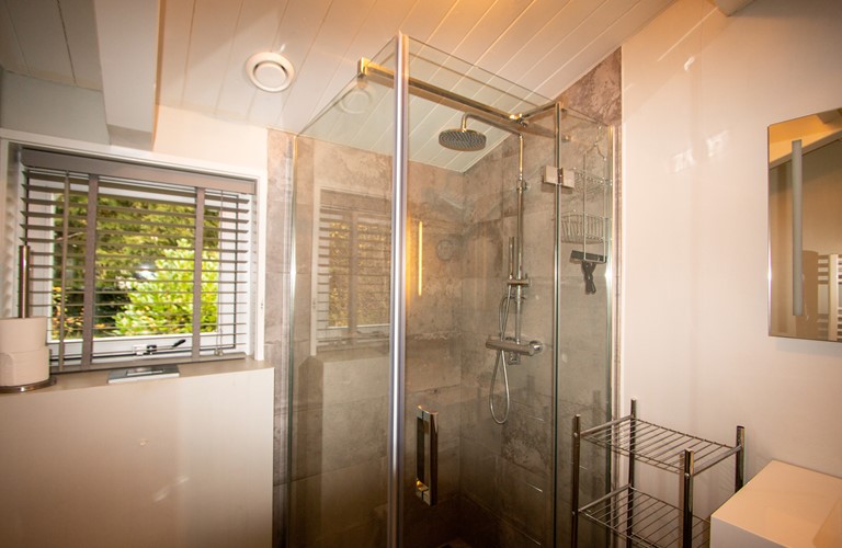 Door de openslaande deuren stapt u zo naar buiten. In de tuin geniet u optimaal van de zon, natuur, rust en privacy op de buitenterrassen, waarvan één overdekt terras. Hier kunt u zelfs nieuwsgierige herten voorbij zien komen. Met de buitenhaard aan en een glas wijn in de hand kunt u hier tot laat in de avond genieten.
